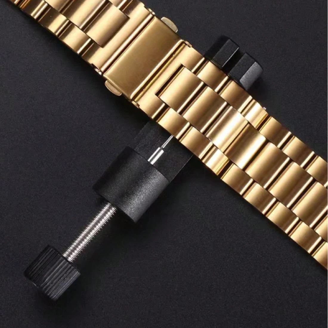 Acest dispozitiv de reglaj este special creat pentru brățările metalice cu zale și îți permite să scoți sau să adaugi segmente fără efort, cu precizie maximă.